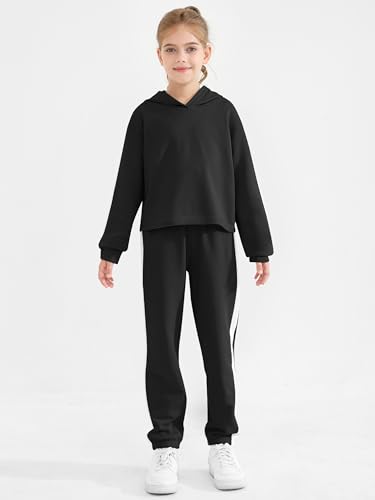 Girls 2-Piece Cotton Outfit Sweatshirts Sweatpants Set Youth Girls Pullover Casual Hooded Tops Pants Tracksuits 6