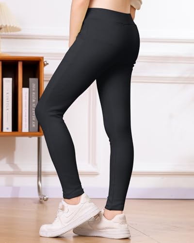 Girls Leggings Cotton Pants Stretchy Tight Toddler Basic Casual Legging with Pockets 5-13years 5