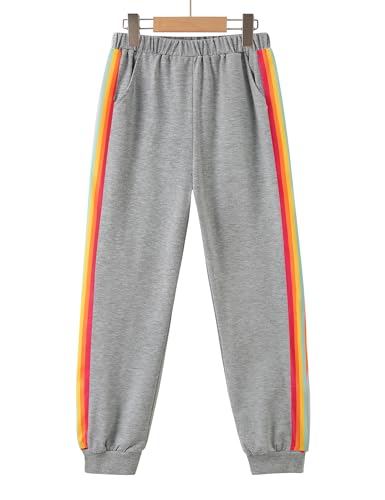 • 🕶️Trendy & Comfortable Girls Clothes – A Must-Have Fall Outfit:Refresh your girl's wardrobe with this stylish girls fall outfit featuring a classic black hoodie and matching jogger pants. Designed with colorful rainbow stripes down the sleeves and pant legs, this two-piece set combines sporty flair with everyday comfort — perfect for girls who love to move and stand out.
