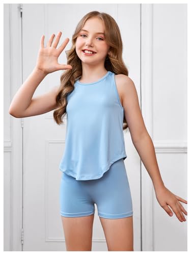 OYOANGLE Girl's 2 Piece Outfits Open Back Racerback Tank Top and Shorts Workout Sets 2