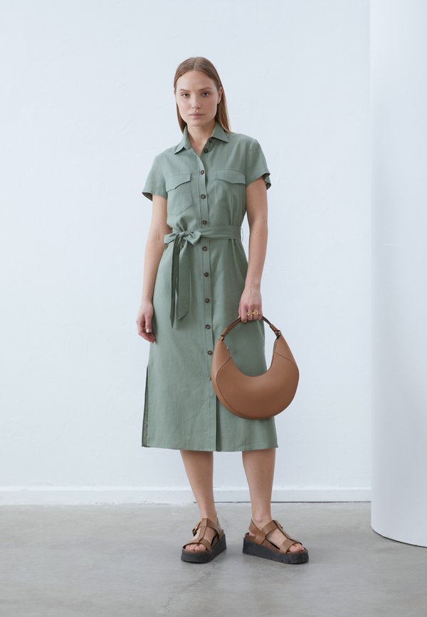 LINEN BLEND SHIRT DRESS - Shirt dress - khaki 1