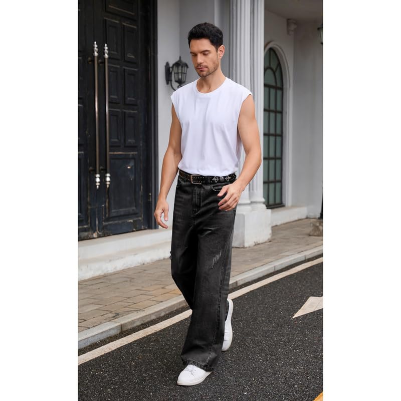 • Comfortable Fit: These baggy jeans for men deliver a roomy wide-leg cut and straight-leg styling for casual comfort. Mens loose fit jeans showcase subtle distressing and vintage washes with reinforced seams. Mens ripped jeans crafted with a carefully positioned ripped detail above the knee, offering a subtle edge that balances modern style with the laid-back comfort of an oversized fit.