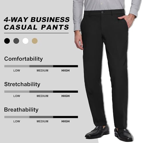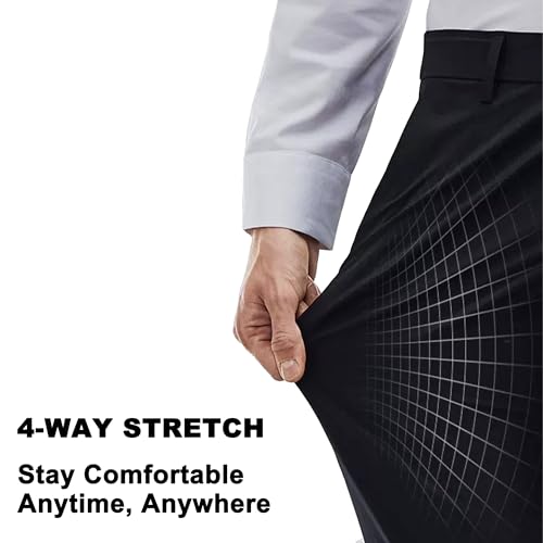 Mens No Iron 4-Way Stretch Dress Pants with Flex Waistband Flat Front Suit Pants for Men 4
