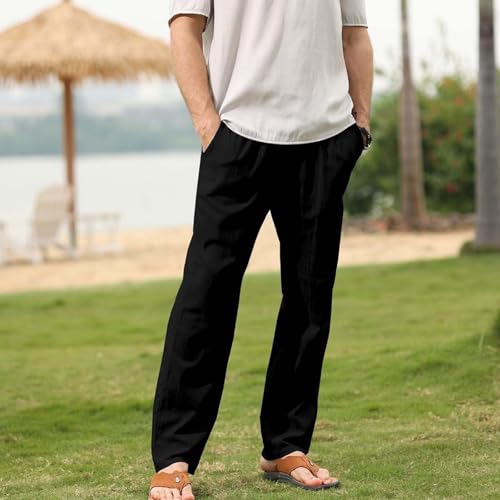 HOT ! Men's Linen Casual Pants - Elastic Drawstring Waist, Loose Fit Straight Leg