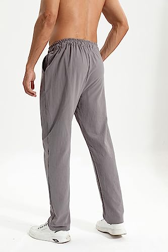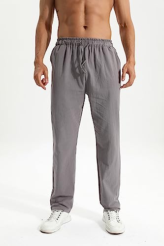 Men's Linen Pants Casual Long Pants - Loose Lightweight Drawstring Yoga Beach Trousers Casual Trousers 7