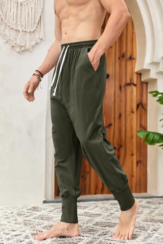 Mens Linen Harem Pants Lightweight Drawstring Elastic Waist Baggy Joggers Casual Cargo Sweatpants Pant 5