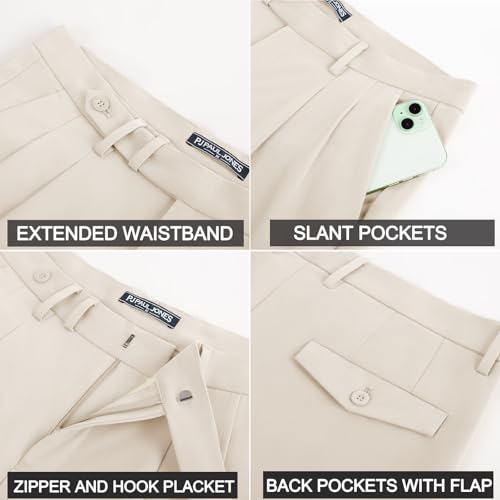 PJ PAUL JONES Mens Dress Pants Vintage Pleated Tapered Cropped Trousers Extended Waist Dress Pant Casual Slacks 5
