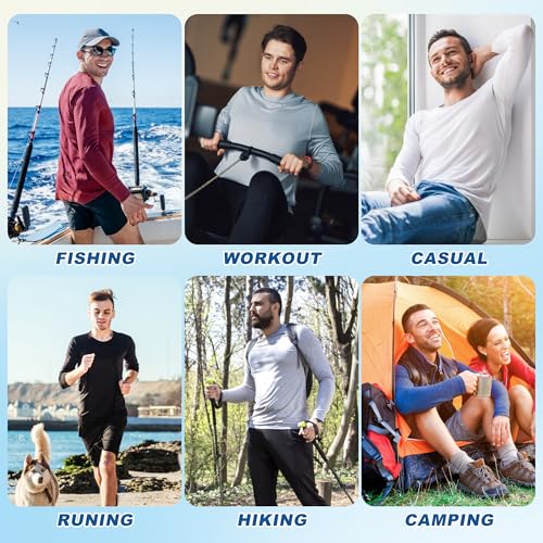 • UV Sun Protection: These sun shirts for men provide UPF 50+ protection, effectively blocking harmful UVA/UVB rays. They provide reliable sun defense during extended activities like fishing, hiking, or running
