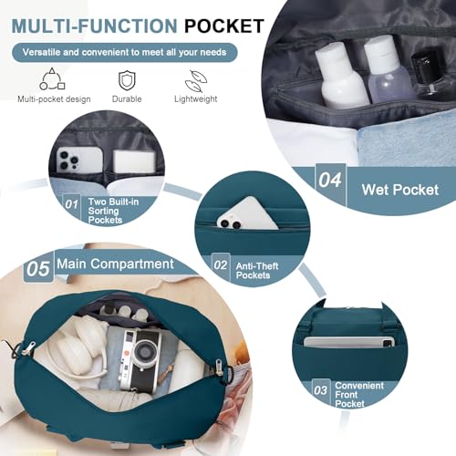 Large Travel Duffle Vacuum Seal Bags for Clothing with Hand Pump Gym Weekender Bags for Women Overnight Hospital Tote Carry On Luggage Space Saver Vacuum Storage Bags with Shoe Compartment PeacockBlue 5