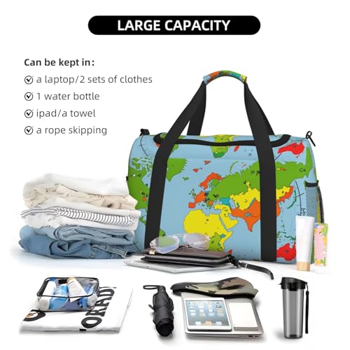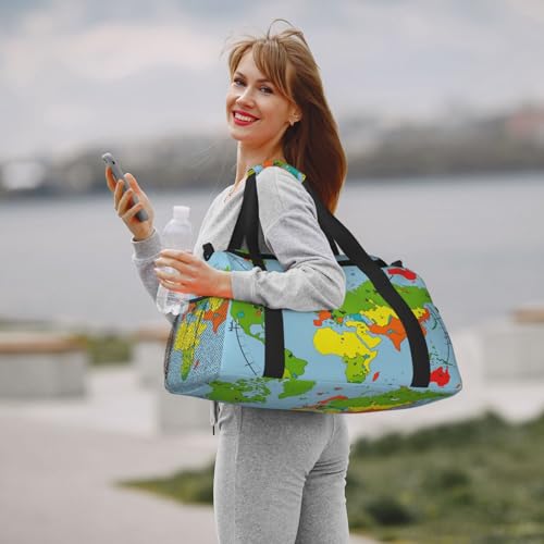 HOT ! Time Zone Map Print Travel Duffel Bag for Men & Women, Foldable Travel Bags and Spacious Weekender Tote Bag for Storage Toiletry Luggage Personal Item