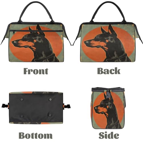 Vintage Dog Pattern Doberman Pinscher Travel Duffle Bag, Waterproof Duffel Bag Weekender Overnight Carry On Bag Lightweight Sport Gym Bag for Men Women 1
