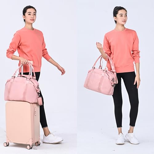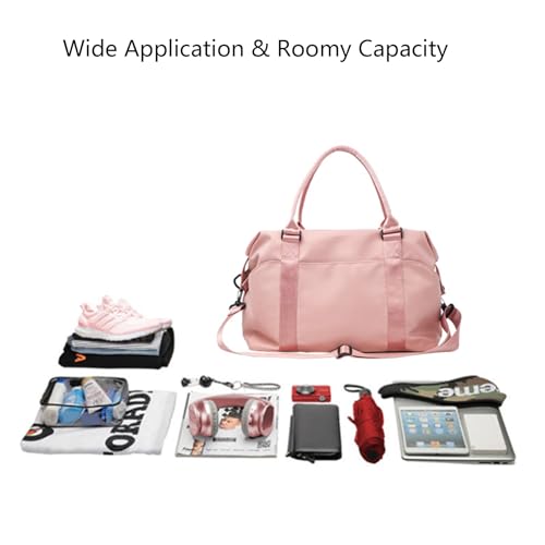 More information about Travel Duffle Bag Waterproof Weekender Bag Carry On Tote Bags for Women Men, Travel Essentials Sport Gym Bag Luggage Bag with Trolley Sleeve (Pink)