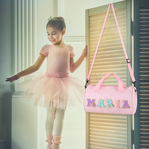 • DIY Letter PatcheTravel Duffel Bag:This cute Dance Ballet Bag can put any chenille letter patches to sport your name,the shiny letter patches and the travel bag creating a style suitable for any scene.The letter patches can be move off or put one freely.