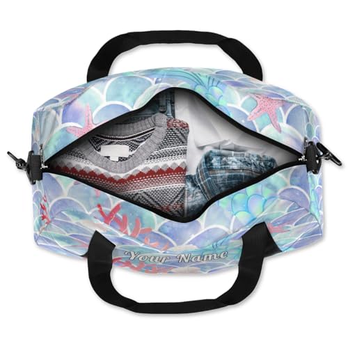 Personalized Kids Duffel Bag Ocean Mermaid Scale Tail,Custom Sport Gym Bag for Boys Girls,WWeekender Overnight Bags Travel Duffel Bag,Customized Kids Gift 4