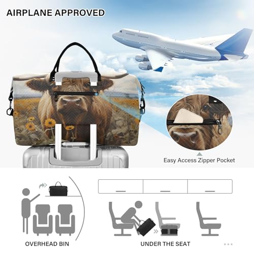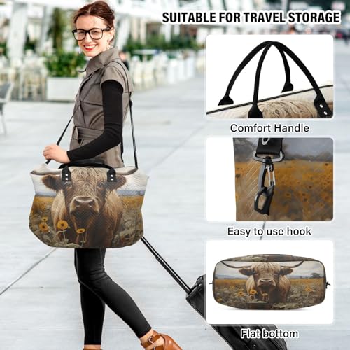 HOT ! CEBUGI Highland Cow with Sunflowers Quilted Duffle Bag for Women Large Carry On Travel Weekend Bag Hospital Bags for Labor and Delivery