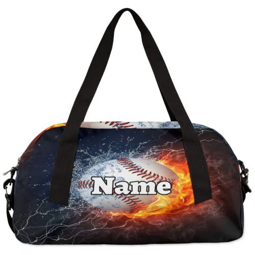 HOT ! Baseball Custom Name Kids Duffel Overnight Bag for Little Boys Girls Teen, Burning Baseball Personalized Small Gym Sport Duffel Bag Travel Weekender Tote Dance Bag, Customized Kids Gifts