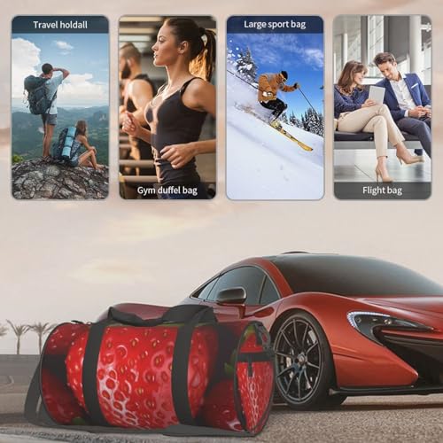 HOT ! Red Strawberry Duffle Bag for Men Women - Carry on Overnight Bag Travel Duffel Tote Bags Yoga Gym Bags Waterproof Weekender Bag Large Luggage Bag with Adjustable Strap
