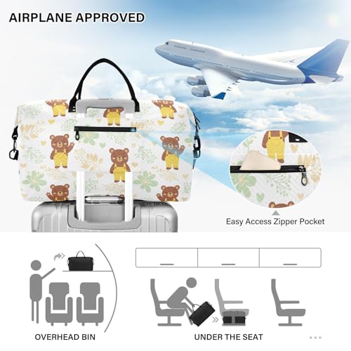 Bear Leaves Heart Travel Duffel Bag for Men Women with Makeup Bag Weekend Overnight Carry On Bags for Under Seat Travel Airline 7