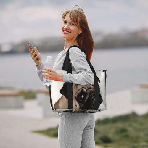 Travel Duffel Bag for Men Gym Bag, Pug Dog Luggage Bag with Shoulder Strap, Large Gym Tote Bag for Women, Weekender Overnight Bag, Foldable Carry on Bag for Airplane 6