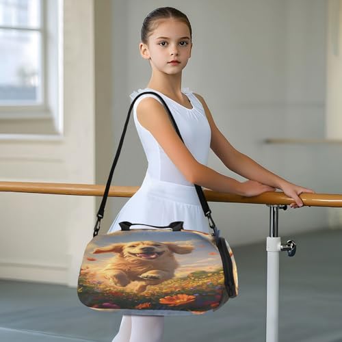Retriever Flower Field Golden Kids Travel Duffel Bag for Boys Girls Overnight Weekend Tote Bag with Shoes Compartment for Beach Swim Trip 6
