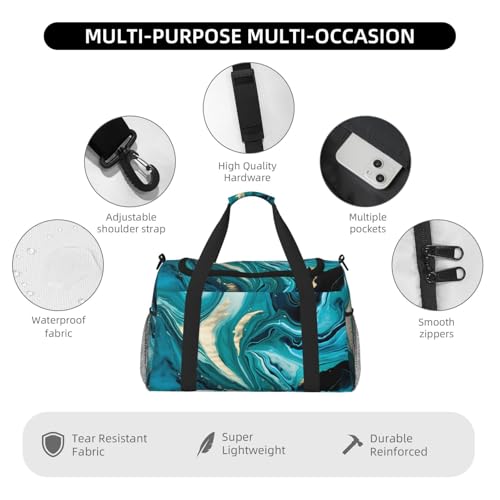 HOT ! Marble Turquoise Duffle Bag for Travel Teal line Sports Gym Tote Carry On Bag Large Shoulder Weekend Overnight for Workout