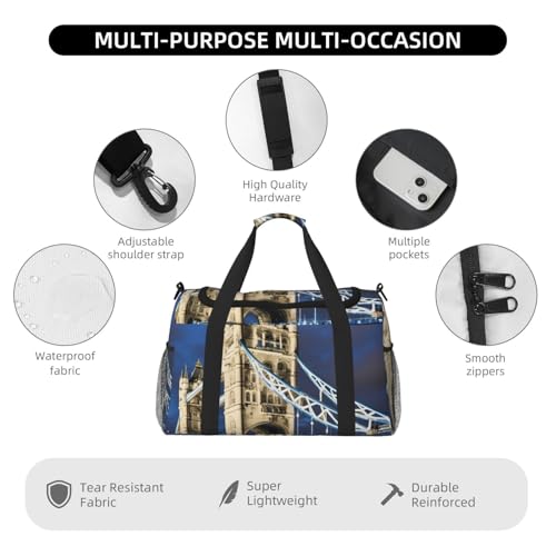 • Measuring an impressive 50x33x26 cm (19.7x13x10.2 inches), this Tower Bridge in London Print travel duffle bag offers ample space to accommodate all your essentials from clothing and electronics to personal items. for weekend getaways, business trips, or daily use.