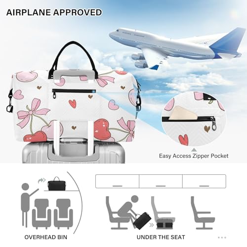 Red and Pink Cherry Pattern Duffle Bags for Women Men Waterproof Weekender Overnight Bags Hospital Bag Large Tote Bag with Toiletry Bag for Yoga Gym Travel Sport Hospital 6