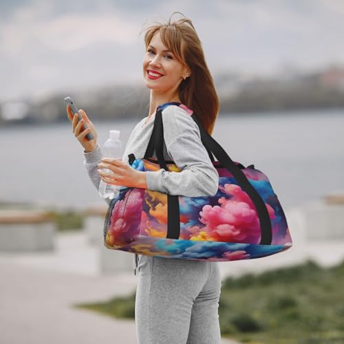 Colorful Smoke Print Travel Duffle Bag - Foldable Personal Item Travel Bag for Women & Men,Carry-On Convertible Crossbody Tote Bags with Adjustable Shoulder Strap & Pockets 13x10.2x19.7 in 7