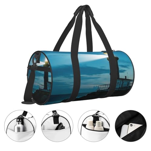 Lighthouse Print Round Large Capacity Travel Luggage Bags,Men's and Women's Hand-Held Travel Clothing Bags 1