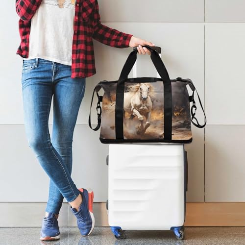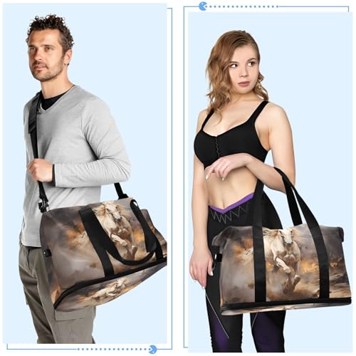 ALAZA Horse Running Animal Travel Duffel Bag for Women Men Sports Gym Bag with Shoe Compartment Tote Weekender Overnight Bag with Wet Pocket for Travel, Gym,Yoga,Swimming 6