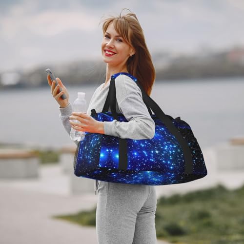 • Activity Accommodator: Galaxy Stars print Gym Bag not only houses gym gear but also effortlessly accommodates essentials for weekend retreats and intense outdoor activities like hunting. Its flexible design makes it a staple for fitness enthusiasts and adventure seekers alike.