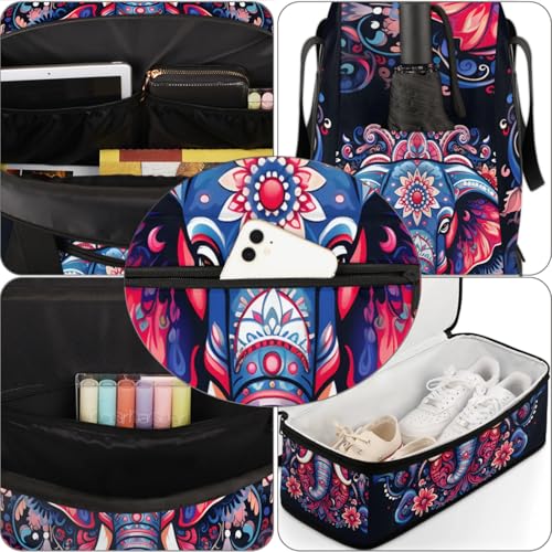 Large Weekender Overnight Bags Animal Elephant Colorful Travel Duffel Bag for Women Men Gym Bag With Shoe Compartment Foldie Travel Tote Bag Carry On Personal Item Bag for Travel Gym Sports 5