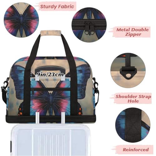 HOT ! Large Weekender Overnight Bags Animal Butterfly Retro Travel Duffel Bag for Women Men Gym Bag With Shoe Compartment Foldie Travel Tote Bag Carry On Personal Item Bag for Travel Gym Sports