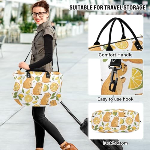 HOT ! Funny Baby Capybaras Travel Duffle Bag,Large Weekender Travel Bag for Women Men Waterproof Luggage Bag with Trolley Sleeve,Airplane Travel Essentials for Flying