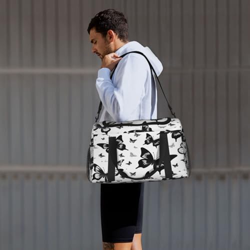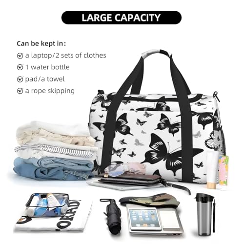 HOT ! Black Animal Butterfly Duffle Bag Travel Duffel Bags for Men Women Waterproof Gym Overnight Weekender Bag Carry on Tote Bag
