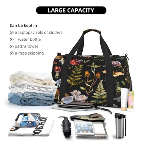 HOT ! Duffle Bag Forest Mushroom Snails Leaves Travel Duffel Bags for Men Women with Adjustable Strap Carry on Gym Bag Overnight Weekender Bag