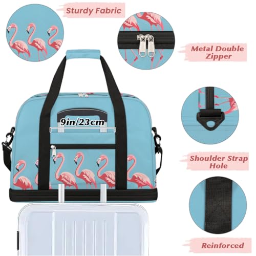 Travel Duffel Bags Flamingo Pattern Foldable Weekender Bags for Women with Shoes Compartment Waterproof & Tear Resistant Carry on Overnight Luggage Duffel Bag Shoulder Sports Tote Bag 5