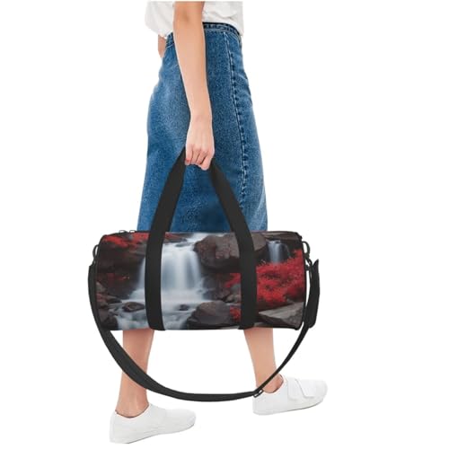 Crimson Cascade Printed Travel Bag,Round Personal Item Storage bag,Foldie Duffel Bag for Traveling Vacation,Fitness,Sports 5