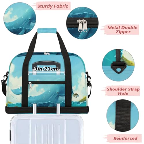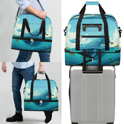 HOT ! Travel Duffel Bag with Shoe Compartment, Whale Fishes Shoulder Weekender Bags for Women, Foldable Waterproof Travel Bag Carry on Bag