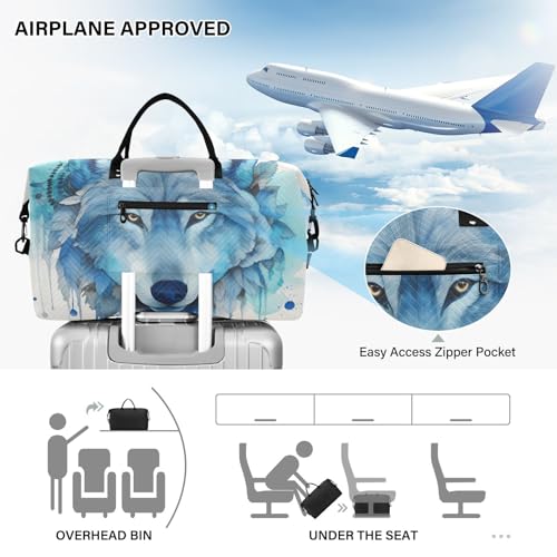 More information about Large Travel Duffel Bag, Watercolor Face Wolf Sports Tote Gym Bag, Shoulder Weekender Overnight Bag for Women Men, Carry On Luggage with Toiletry Bags