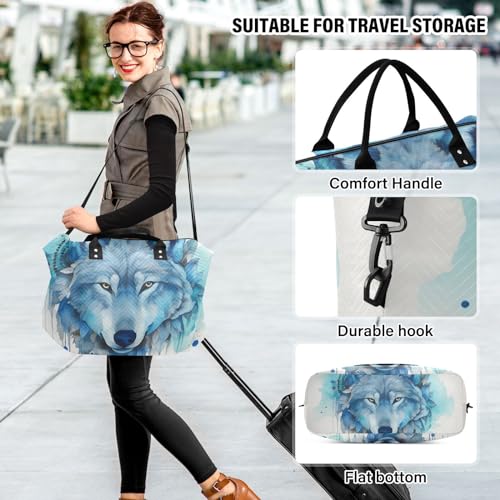 Large Travel Duffel Bag, Watercolor Face Wolf Sports Tote Gym Bag, Shoulder Weekender Overnight Bag for Women Men, Carry On Luggage with Toiletry Bags 7