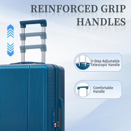 20"/24"/28" 3 pcs set in ABS Spinner Wheel Luggage Carry on Suitcase Matching Color TSA Combination Lock (Navy + ABS) 7