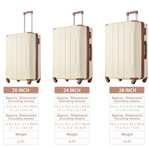 Hardshell Luggage Sets 3 Pcs Spinner Suitcase with TSA Lock Lightweight 20''24''28'' 6