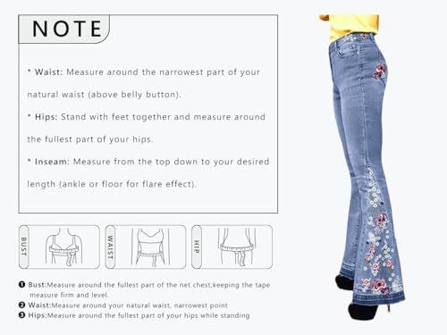 • 【Features】Embroidery Designs are the hottest latest trend in women's fashion industry. They are considered so stylish nowadays. If you are looking for a sexy high waist bell-bottomed jeans broad feet pants that can make your body curves shine bright like a diamond, then this will be your favorite jeans