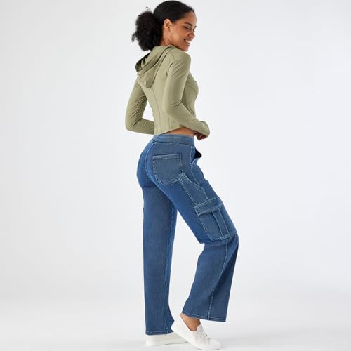 Women’s Pull-On Cargo Jeans - Mid Rise Wide Leg, Soft Stretch Denim, Comfort Fit with Pockets 4