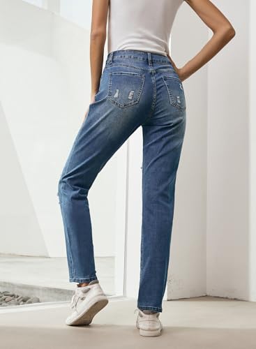 • Match:Womens classic ripped jeans has a laid back style. Mom jeans pairs well with blouse,sweaters, shirts,coats, boots and heels. Fashionable destruction and wash designs with professional workmanship.