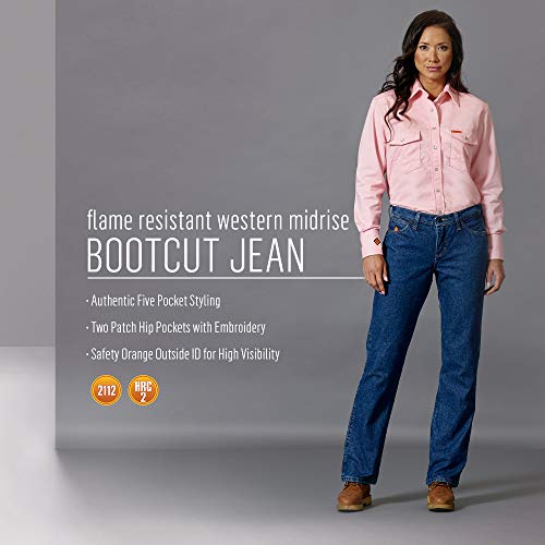 • REGULAR FIT. Made for women who are ready to get to work, this regular fit boot cut jean is constructed with a leg opening that will fit perfectly over your favorite pair of work boots. A mid rise sits comfortably on the waist.