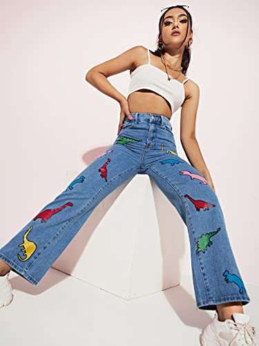 More information about WDIRARA Women's Cow Print Ripped Jeans High Waisted Button Skinny Denim Pants
