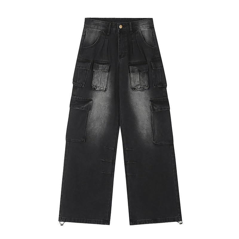 More information about Cargo Pants with Pockets Men Women Baggy Jeans Y2k Wide Leg Grunge Loose Jeans Clothes Streetwear Black