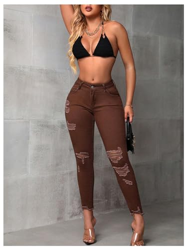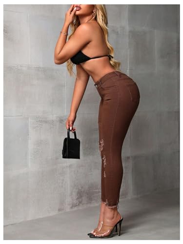 More information about WDIRARA Women's Ripped Distressed Frayed Skinny Jeans Stretch Denim Pants